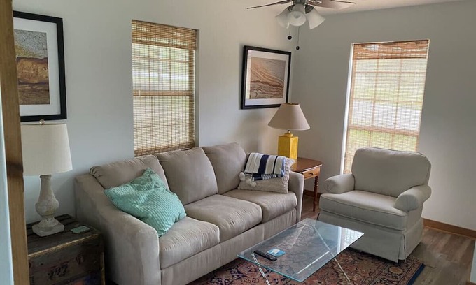 Nestled perfectly between the vibrant Oxford Square and scenic Sardis Lake, Hurricane Hideaway is the ideal escape for a romantic getaway or a peaceful retreat with friends and family. This newly renovated one-bedroom cabin combines modern elegance with a serene setting, offering everything you need for a relaxing stay.
