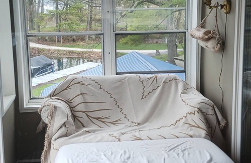 Newly painted, updated furnishing two bedroom, one and a half bath apartment above marina at Blind Bay NY. Has direct access to the St. Lawrence River. Easily launch and slip your boat. Trailer parking available. Beautiful views of Blind Bay. Air conditioning, internet, trash disposal all included. Exceptionally clean. Perfect for fishing trips. Marina is a functioning business with a small, quiet bar/bistro beneath. Peaceful weeknights/days and higher energy weekend evenings. Closes at 8p. We work very hard to make sure your stay is comfortable and that your lodging is clean.