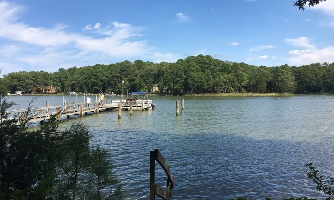 The home comfortably accommodates 10 guests - 5 bedrooms & 4 baths. There is a fully equipped kitchen, WiFi, cable television, DVD player, games, books, beautiful relaxing deck, chairs by the water, kayaks, etc. Our dock has mooring for a boat, a new float, crab traps, & fishing (no fishing poles provided)! We are within a 10 minute drive from Neavitt's boat launch & about a 30 minute boat ride to our dock.