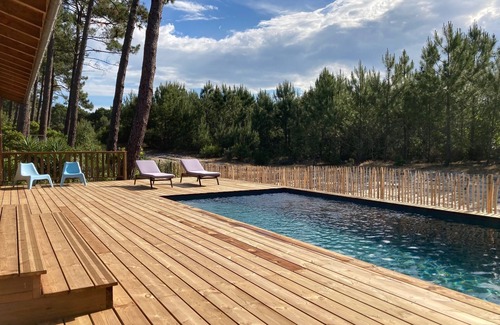 Best-rates for the Carcans Plage house starts from $408 per night with includes Kitchen, Ocean View, Balcony/Terrace, Wellness Facilities, Parking, Pool, TV, Private Pool, Bedding/Linens, View, Oceanfront, Sports/Activities, Fireplace/Heating, Laundry, Security/Safety, Entertainment, Barbecue/Outdoor Cooking, Child Friendly, Internet with all other amenities. Perfect for Weddings is committed to ensuring every guest experiences a comfortable and extraordinary stay, whether planning a romantic getaway, a honeymoon, a pet-friendly stay, or celebrating with the entire wedding party.