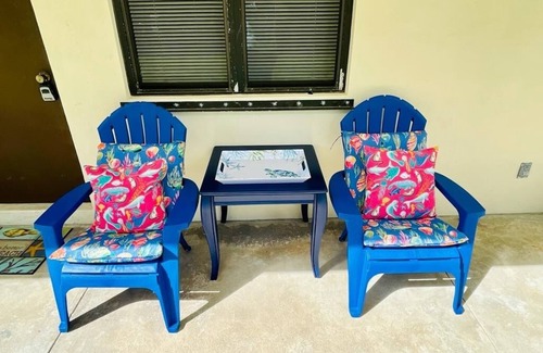 Fantastic Hutchinson Island location with a relaxed island vibe! Bring the boat! Whether you're looking for a romantic weekend getaway, a family vacation, a working holiday, or just some me time, you've come to the right place!! Steps from the beautiful Atlantic ocean and walking distance to the Fort Pierce Jetty/Inlet, Archie's Seabreeze, Square Grouper, and Hurricane Grill restaurants, just to name a few. Enjoy a romantic waterfront dinner while listening to live music! Check out the beautiful parks, take a scooter or bike ride (rentals on nearly every corner). Enjoy relaxing on the beach, world famous fishing, horseback riding, parasailing, the Navy Seal Museum, and much more! The condo is fully equipped with everything you need for a comfortable and relaxing getaway. King size bed in the bedroom and an inflatable tall queen mattress for the living area. Children’s toys, color books, art supplies are available upon request for use while vacationing. Pets are on case by case basis and must be owner approved, $100 pet deposit.