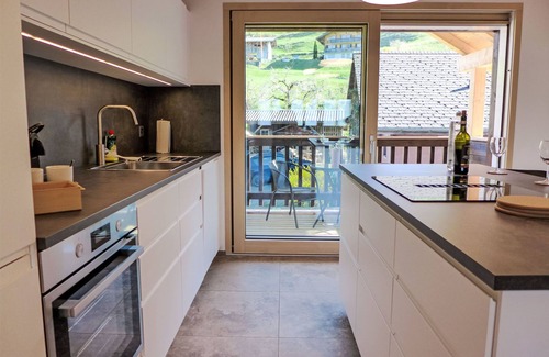 "Huus Chloster, Apt Büel", 3-room apartment 100 m2, on the top floor. Spacious and bright, fully renovated in 2025, very comfortable and tasteful furnishings: open large living/dining room with panoramic window with dining table and cable TV. 1 room with rooflight with 1 double bed (2 x 90 cm, length 200 cm). 1 room with 1 sofabed (80 cm, length 200 cm), 1 double bed (2 x 90 cm, length 200 cm). Large, open kitchen (dishwasher, 4 induction hot plates, toaster, kettle, freezer, electric coffee machine, Capsules for coffee machine (Nespresso) extra, raclette grill, cooking island, fondue Set (chinoise, cheese)). Exit to the balcony. Shower/WC. Underfloor heating. Solar power. Balcony, south facing position. Marvellous panoramic view of the lake, the mountains and the countryside. Facilities: children's high chair, baby cot for up to 2 year olds (extra), hair dryer. Internet (WiFi, free). Parking (1 car). E-charging station. Please note: not suitable for children under 7 years. Non-smoking house. Fire extinguisher.