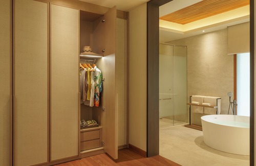 Huvafen Fushi Maldives offers 44 air-conditioned accommodations with private pools and private plunge pools. These individually decorated and furnished accommodations include day beds. Beds feature premium bedding. A pillow menu is available. 45-inch LCD televisions come with digital channels. Espresso makers and minibars are provided. Bathrooms include shower/tub combinations with rainfall showerheads, bathrobes, slippers, and designer toiletries.