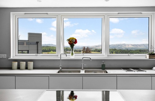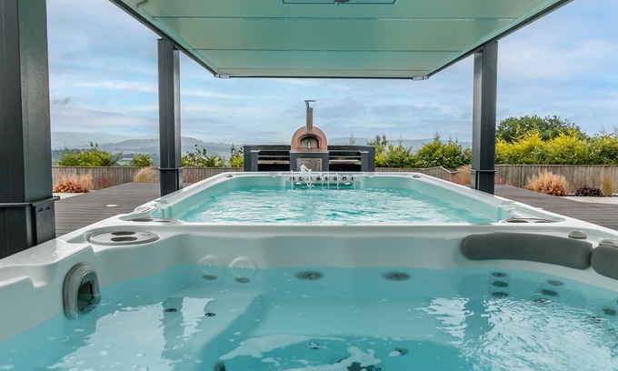 Just a few minutes from Exeter, this luxury self-catering home with a large swim spa and integrated jacuzzi is a modern and welcoming escape for a large family gathering or group getaway. Huxham View has been thoughtfully designed to feel as though its bright living spaces are a continuation of the rural landscape outside. Sleek interiors welcome open-plan living while bi-fold doors and huge windows make the most of the spectacular panoramic Devonshire views. No Pets, Hen or Stag parties.