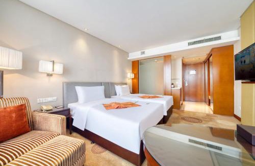 Located in Huzhou, 12 miles from Huzhou Railway Station, Huzhou Changxing New Zijin Hotel features views of the city. Among the facilities of this property are a restaurant, a shared lounge and room service, along with free WiFi throughout the property. The property provides a 24-hour front desk, a business center and luggage storage for guests. The hotel will provide guests with air-conditioned rooms offering a desk, an electric tea pot, a safety deposit box, a flat-screen TV and a private bathroom with a shower. All guest rooms feature a closet. A buffet breakfast is available at Huzhou Changxing New Zijin Hotel. Yixing Railway Station is 25 miles from the accommodation. Sunan Shuofang International Airport is 63 miles away.