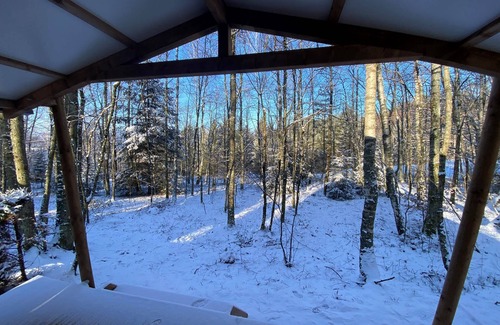 Welcome to the warm world of HY•Lødge Spa n°1 , a romantic chalet for 2 people with private spa . Nestled in the heart of the Vosges nature, this intimate lodge offers a perfect setting for a romantic weekend and unforgettable moments as a couple. Surround yourself with the serenity of the forests and the authentic charm of the Vosges while enjoying modern comfort and careful decoration.