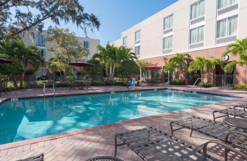 This Sarasota hotel is located directly across from the Sarasota-Bradenton International Airport. The Hyatt features a 42-inch flat-screen TV in every room, an outdoor pool with a hot tub and 24-hour cafe. Bradenton Sarasota Hyatt Place guest rooms are furnished with a separate living area and include coffee-making facilities and a refrigerator. In-room media includes an MP3 docking station, free Wi-Fi and cable TV. Guests at the Hyatt Place Sarasota have free access to the 24-hour fitness center and business center. Airport transfer services are provided. Sarasota Hyatt Place is a 5 minutes' walk from the John and Mable Ringling Museum of Art. Sarasota Jungle Gardens is also 5 minutes from the hotel and Siesta Key Beach is 20 minutes away.