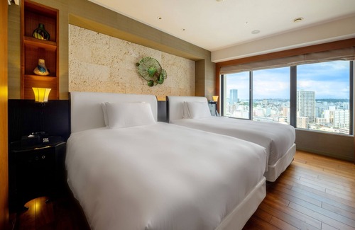 Hyatt Regency Naha, Okinawa offers 294 accommodations with safes and complimentary bottled water. Each accommodation is individually decorated. Beds feature down comforters and premium bedding. 40-inch flat-screen televisions come with satellite channels. Bathrooms include showers, bathrobes, slippers, and designer toiletries.