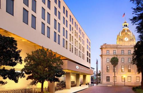 Offering an indoor pool and free Wi-Fi access, this hotel is located in the Savannah Historic District. Hyatt Regency Savannah is located on the Savannah River with direct access to River Street right outside our doors. Half of the hotel overlooks the river. A 55" flat-screen cable TV is featured in all Hyatt Regency Savannah rooms which also includes Netflix and Hulu streaming services. An private bathroom with a bath or shower is included in each room in addition to coffee-making facilities. A fitness center and business center are on site at Savannah Regency Hyatt for guests to use. A 24-hour front desk, vending machine, and tour desk are available for guests’ convenience along with a 24-hour market for grab and go items. The Southern-inspired Moss + Oak Savannah Eatery is serves breakfast, lunch, and dinner from an open-air kitchen. Guests can also relax on the outdoor patio or with a drink at Moss + Oak Bar. Room service is available. Savannah city center is 2625 ft from this Hyatt Regency, the Club at Savannah Harbor is 3.4 mi away, and Savannah International Trade and Convention Center is 3.4 mi from the hotel.
