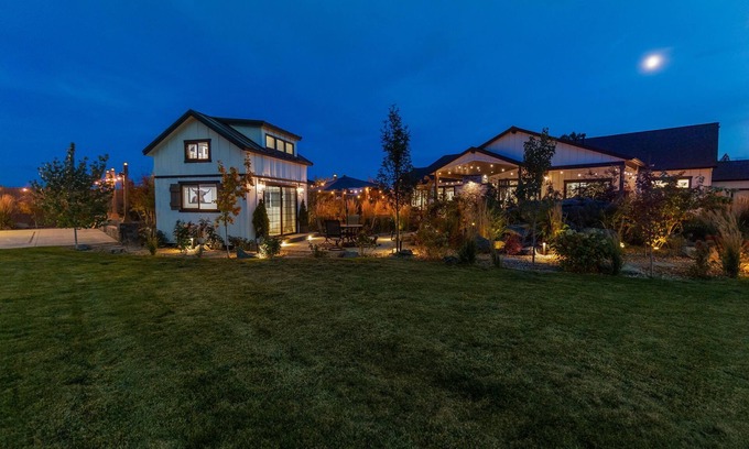 Hyde House. The pinnacle of luxury retreats, features a pickleball court, basketball court, and expansive outdoor spaces, making it perfect for groups of up to 15. Relax by the tranquil koi pond and soothing waterfall near the casita, soak in the hot tub, or gather around the cozy fire pits. Inside, enjoy a stunning kitchen with a massive island, a claw foot tub, and a game room complete with arcade games, ping pong, and air hockey. Just 10 min to downtown & 30 min. to Mt. Bachelor.