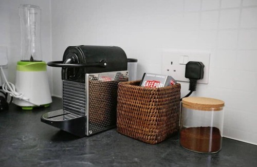 For those restful nights at home, there is a large flat-screen TV with a sound bar, stereo system, DVD player, and high-speed WiFi broadband internet. The plush oversized L-shaped sofa is comfortable and inviting. It additionally opens to double as a sofabed, and it is perfect for relaxing after work or gathering around the family to create new memories. In other words, this maisonette provides all the comforts and conveniences of a home… away from home.