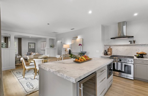 Stay in the most desired neighborhood in Tampa steps to Berns Steak House, Bayshore Blvd, and Hyde Park Village. This totally remodeled home has two kings size bedrooms (1 w/ en-suite showier bath) (2nd with hall bath w tub/shower) with sweeping front porch, a beautiful open floorplan w gourmet kitchen w huge island, Dacor 6 burner stove, dining and living room, 3 new Samsung Smart TVs, new washer/dryer, off street parking, Molton Brown hand soap and shower wash, and much more.