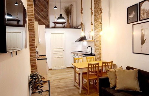 It is newly renovated and has direct access from the street. It is very bright and consists of two rooms: a living-dining room with sofa bed and open kitchen; a master bedroom with a 150cm bed. The flat has a complete bathroom with shower. You will have 55‘ and 43’ TV in each room and air conditioning as well as free Wifi and a walk-in wardrobe in each room. In the kitchen you will have a Dolce Gusto coffee machine and an Italian coffee machine, ceramic hob, washing machine, microwave, fridge, iron, hairdryer and everything you need to cook.