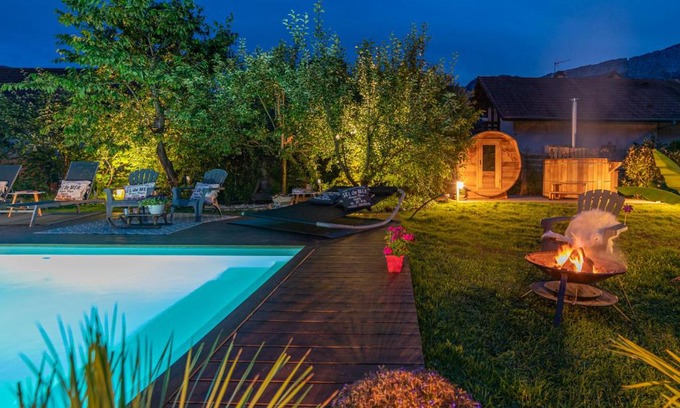 Offering garden views, Hygge Lodge Annecy in Doussard provides accommodations, an open-air bath, and a garden. With mountain views, this accommodation offers a balcony. There's a seasonal outdoor pool and guests can make use of free Wifi, free private parking, and an electric vehicle charging station. Featuring a terrace, the units offer air conditioning and have a flat-screen TV and a private bathroom with walk-in shower and bathrobes. Rooms come with a coffee machine, while some rooms also feature a fully equipped kitchenette with a microwave, a toaster, and a fridge. At the guest house, units come with bed linen and towels. Continental and vegetarian breakfast options with fresh pastries, pancakes, and fruit are available. The guest house offers a variety of wellness options, including a sauna, a hot tub, and yoga classes. Guests at the guest house will be able to enjoy activities in and around Doussard, like hiking and walking tours. Halle Olympique d'Albertville is 18 miles from Hygge Lodge Annecy, while Chateau d'Annecy is 12 miles from the property. Chambéry-Savoie Airport is 38 miles away.
