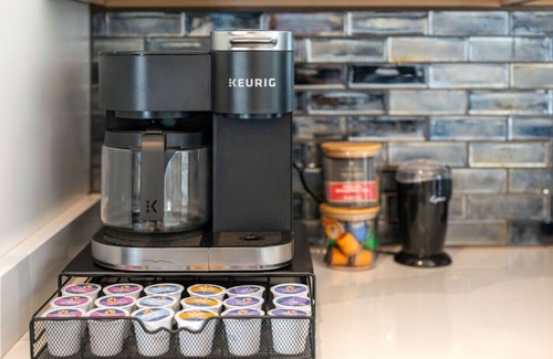 • Gourmet Kitchen: A fully equipped kitchen with modern appliances, including a new fridge, freezer, oven, stove, rice cooker, and 2 dishwashers. The kitchen is fully stocked with plenty of serving ware, kitchen essentials, and a Keurig coffee machine stocked with pods, sugar, and creamer. Guests are welcomed with a thoughtful basket of snacks and a guidebook filled with recommendations for things to do and places to visit in the area.