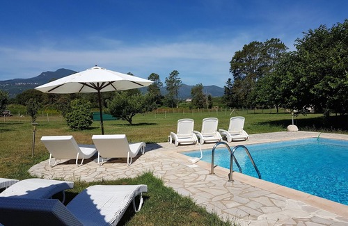 the swimming pool 13mx6m is shared with the hosts of the 2 other lodgings located in the surrounding meadow, it is equipped with 2 regulated alarms.