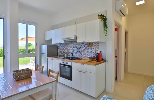 Apartment for 4 people with independent entrance composed of living room with equipped kitchen and double sofa bed, bedroom with double bed and private bathroom. The apartment has a private outdoor space consisting of a private patio with table and chairs, washing machine and sink, barbecue and outdoor shower.