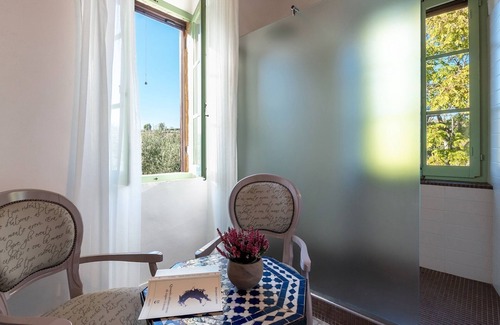 The villa is immersed in the wooded park of the I Lauri Golf Club, among shady lawns, olive trees, fruit trees, bamboo and a centuries-old oak tree. The garden is fenced and bordered by hedges. Several furnished seating areas are distributed around the villa, including a spacious dining area next to the pergola. Guests can use the outdoor spaces when the golf course is closed. Access is via an automatic bar with an entry code. N.B.: Please note that the photo shoots are usually carried out in spring, so the colors and blooms of the gardens, lawns and parks may be different when you enter the villa.