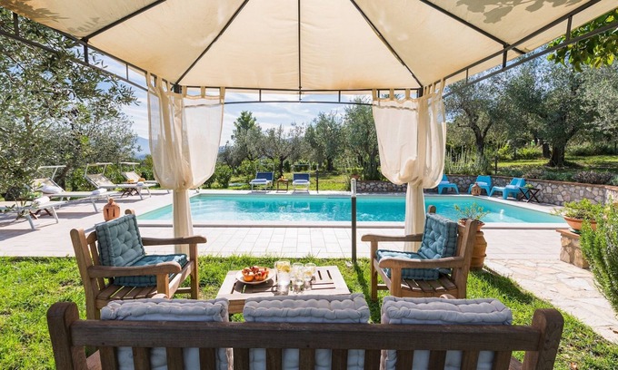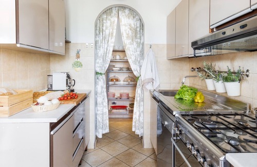 Please notice that photos are taken in spring, therefore flower blossoming, and the colours of the gardens' grass could be different at the moment of your arrival at the villa.