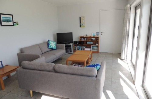 Stunning sea, sunset and Kapiti views and you might be lucky to watch a para-glider land on the beach in front of your holiday home. A totally relaxing experience where if the weather is fine you can go for long beach walks or just sit on the lawn and watch the waves, the seagulls or watch the sun go down. Or if it is wet you can just curl up with a book or look out and see the many moods of the sea. It is a 15 minute beach or bush walk to Paekakariki Village with 3 wonderful cafes, the village grocer which has everything you need. Just like an ‘old fashioned’ grocery store. Train station 15 minutes walk or 5 by car. Leave your car there to visit Wellington. 10 minutes by car to Coastlands Shopping Centre. The start of the Escarpment walking track from Paekakariki to Pukerua is 10 minutes walk away.