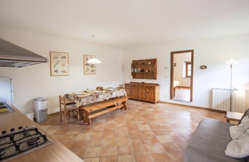 "I Noccioli", 2-room apartment 50 m2, on the ground floor. Comfortable furnishings: living/dining room with 1 double sofabed. 1 double bedroom. Kitchenette (4 hot plates, freezer). Shower/bidet/WC. Heating (extra). Garden. Terrace furniture. Please note: maximum 2 pets/ dogs allowed. Smoke alarm, fire extinguisher. IT048037C2MVLI9BUW