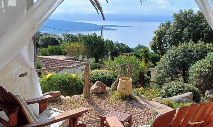 Located in a quiet and wooded residence near the sea (4.5 km from Cala d'Orzu beach). The accommodations have a furnished terrace with panoramic views of the Gulf of Valinco (Cupabia bay) and a flowered garden with a children's play area. The residence, entirely fenced and secured by a motorized gate, offers free private parking for all of the accommodation.