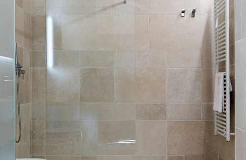 Bathrooms include showers and bidets. Smart televisions are featured in guestrooms.