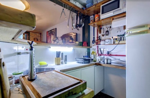 Welcome to the artist's house/loft, a stunning retreat designed to cater to all your needs. As you step inside, you'll be greeted by a spacious living room that offers the perfect setting for relaxation and entertainment. The centerpiece of the room is a state-of-the-art multi-channel/film smart TV, ensuring that you can indulge in your favorite shows and movies. Sink into the very comfortable sofa, providing the ideal spot for unwinding after a long day of exploring the vibrant city. Adjacent to the living room, you'll discover a gourmet kitchen, fully equipped, inviting you to channel your inner chef.