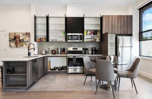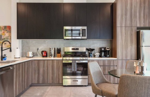 Welcome to this beautiful 2 bedroom newly built apartment located in downtown East Orange. Guests will enjoy a supreme location close to a variety of eateries and public transportation including 10 minute walk to the train station from the apartment building. Guests will have everything from culinary needs to bedding/bath, suitable for monthly stays or a few nights. The space has all modern appliances including a washer and dryer providing all the necessities to be your home away from home.