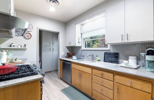 If you enjoy cooking, you are very welcome to cook in a Le Creuset pan and use the new appliances (microwave, airfrier, waffle maker, blender, coffee maker) and more. Get a flower outside for the dinner table and make it special or a lemon off the tree for your salmon.