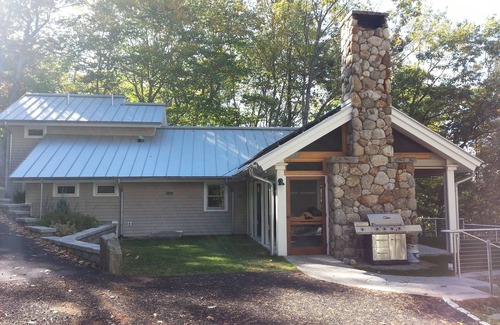 The home (we call it “The Lodge”) was built in 2013 with LEED-Platinum construction standards in mind. It was built on the same spot where our extended family’s first Little Sebago “camp” used to sit. It was hard for some of us to see it go, but the design of the new Lodge was based on many years of vacationing together in this exact location, and it works great for family reunions and multiple family rentals!