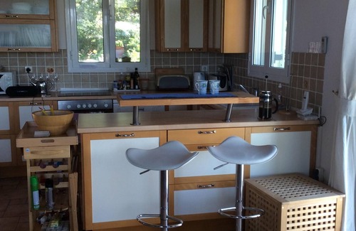Set on a hillside in true Durrell country covered with pine, cypress, olive, fruit and nut trees. Villa Pascalia has total privacy and has views across the sea to the north east coast of Corfu and Mount Pantakrator. Spacious interiors open out on to covered villa terraces, the pool terrace, a lawned area and a side terrace, shaded by a large olive tree and bordered by plumbago, bougainvillaea and roses. Gastouri village is a 10 minute walk away and has three tavernas, ( takeaway pittas available )one small mini market and a traditional bakery with a wood-fired oven. The fishing village of Benitses is a 5 minute drive. The sandy beach of Agios Gordis (on the west coast), is a 15 minute drive as is Corfu Town with it’s amazing history and cosmopolitan restaurants. Loads of shops and local delights .