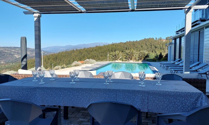 With wonderful views over the Serra da Estrela and Serra do Açor, the 3 Caprichos space consists of a modern villa with 3 bedrooms en suite, a kitchen, a kitchnet, a lounge with integrated sound system, an outdoor grill and a 12 / 4 meters.