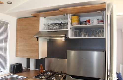 Guest accommodations at Ideal for family relaxation - 4* campsite offer coffee/tea makers and hair dryers. Rooms open to patios. Kitchens offer refrigerators, stovetops, microwaves, and cookware/dishes/utensils. Bathrooms include showers.
