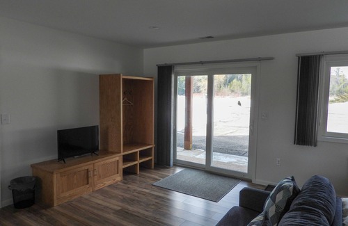 The Lodge is a newly converted three-unit building with accommodations from one or two to up to six, depending upon the unit. Each unit is self-contained. All units share a common entrance with separate, dedicated access to each unit. This one, Unit 2, is a large one-room efficiency with kitchenette with two plate stovetop, microwave, mini fridge, hot water kettle, and a separate bathroom with shower.