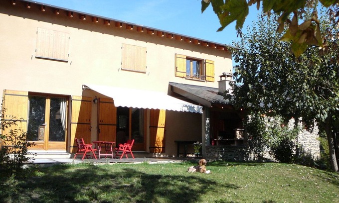 House with garden for 6/7 people located in the village of saillagouse close to shops. At 8km from Spain PUIGCERDA and 5 km from the enclave of LLivia. The house comprises on the ground floor: an entrance. 1st floor living room with French window to the balcony, a fully equipped kitchen with dishwasher, oven, microwave etc .. a room for 2 people, a bathroom with bath, w. c, washing machine. Upstairs: 1 bedroom with a bed for 2 people, a mezzanine with a sofa bed for 2 people. Landscaped garden with barbecue, table, chairs,