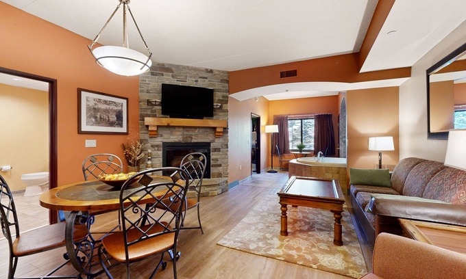 Ideally located condo with fireplace, jetted tub, on-site golf, & central AC | Condo in Wisconsin Dells