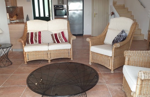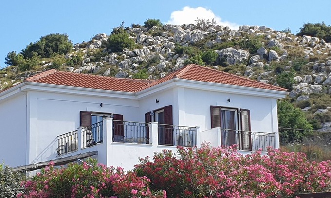 This is an exceptional villa with beautiful sea views, in a peaceful non overlooked village location. On the edge of Havadata, the villa is tucked into a hillside with a mix of olive trees, firs, and oleanders providing privacy and a tranquil feel. There are few neighbours so it's quiet and private. In the village there are two shops, a taverna and a bar with a terrace and views to the sea.