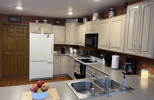 Fully equipped 2 Bedroom (a Queen Bed in the Master Bedroom and 2 Queen Beds in the Loft). In the Large Loft there is an additional Queen Blow-Up Bed. 1 roomy full bathroom provides ample space and includes washer/dryer within. Home includes forced air heat/air conditioning, washer/dryer, dishwasher, fridge, full-sized oven/range, and microwave. At the footsteps of upper Door County!