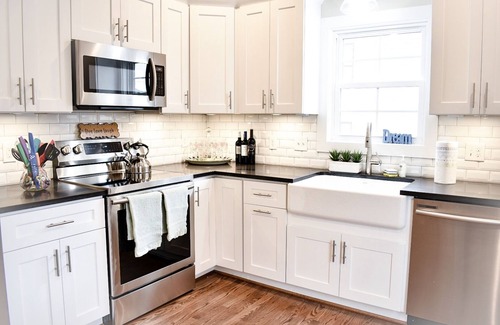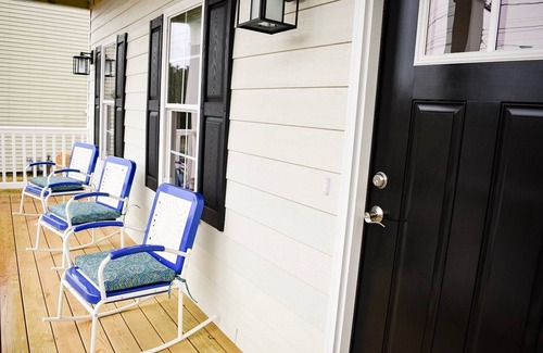 You and your guests will drive to the rear of the house where you will have private parking. The rear door is keyless entry and Leslie, or our house host Ashley, will provide the code prior to your check in. As you enter into our beautiful newly built home, you walk into the kitchen which is the heart of the home. The house is light filled and brand new. There is a private room with a Queen bed on the main floor with a full bath across the hall. The living room is towards the front of the house with a pull out sofa to accommodate a full bed. The front porch is the perfect spot to take your coffee and the start the morning off right. Heading upstairs there is a private room with a Queen bed and right across is a room with full over full bunk beds that sleeps four total. Heading down the hall there is a shared bathroom for those two rooms. Further down you will enter a huge master bedroom. The master offers two twin over twin bunk beds and 1 twin over full bunk bed. Total this room sleeps is 7 with an en suite bathroom. Don't over look the balcony from this room. The door leads out to a beautiful balcony where you enjoy our luxury seating while viewing the Richmond city sky line.