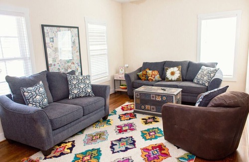 The Idlewood Hive is a private home, situated in a quiet neighborhood, just 6 minutes from downtown Richmond. Enjoy the laid back quiet feel, while being close enough to fully enjoy downtown. Large country decks, 8 foot custom locally made Farm Table, and large kitchen filled with great amenities make it perfect for families, friends, and work retreats. Home sleeps 16 people comfortably.