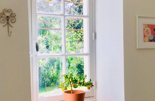 Maison des Vignes, named after the vines that grow above it's sunny terrace, is situated in the grounds of Le Manoir du Bois Mignon. A detached 250 year old cottage, provides luxurious but authentic and rustic French accommodation in stunning and peaceful surroundings overlooking beautiful grounds and the Dordogne river. Renovated in 2020, featuring a modern kitchen and bathroom and a mix of antique and contemporary furnishings, beamed ceilings, original terracotta tile floors, window shutters, large working Perigordian fireplace and even an original stone wash basin have been retained. The spacious accommodation on 1 level extends to 120 Sq metres, and sleeps 4-6 people in 2 bedrooms (additional single beds can be put into bedrooms by prior arrangement) The heart of the cottage is it's large open plan living/dining room, this is a really sociable room and a cool place away from the heat of the summer sun. The rest of the accommodation comprises of 2 elegantly furnished bedrooms both with king sized double beds. Outside on the terrace are both lounging and alfresco dining areas, large BBQ and comfy sunloungers. Guests have shared use of a stunning pool and 2 acres of mature grounds.