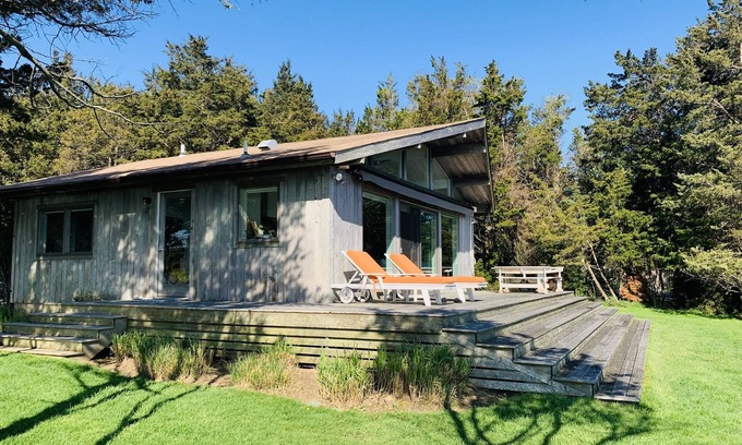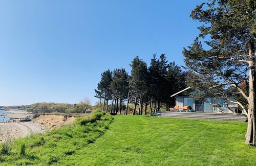Spectacular 60's Modern beach house located on a secluded bluff in East Hampton on Gardner's Bay, next to a 17 acre preserve. Has all the modern amenities for an incredible stay. Complete with stunning views & relaxing vibe. The house has a set of stairs that lead directly to the bay.
