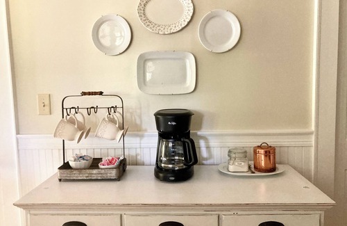 The Carriage house sleeps six with options: a cheery sunroom (king), a spacious bunk room (a queen and three twin xls) and a cozy attic room (a twin bed located through a secret door in the bathroom). You’ll have access to 82 beautiful acres, including hiking trails through woods and pastures and across creeks, fishing in a stocked pond (catch and release only please) and sipping your morning coffee overlooking green pastures or beside a misty pond. Visit with our jersey cows, Dolly and Daisy, and take pictures with our two adorable valais blacknose sheep, a unique breed from the mountains of Switzerland.