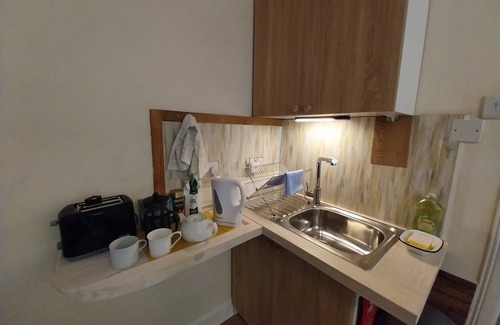 The kitchenette doesn't have an oven or hob but does boast a full range of appliances to help you cook up a feast (air fryer, microwave, toaster, kettle, cafetiere, slow cooker, fridge and freezer...as well as the inevitable kitchen sink!). The freezer has a selection of delicious home cooked frozen meals which you can purchase from us (only £7 for a two person meal) and warm up in the microwave. These meals are made by a South African lady running a very successful delicatessen in Garelochhead. This is a very popular option! The dining area includes a large table and chairs.