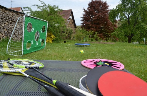 Idyllic half-timbered house with a large garden and playground and orchard is located in Cleebourg. Idyllic half-timbered house with a large garden and playground and orchard provides accommodation, featuring Sports/Activities, Guest Services, Barbecue/Outdoor Cooking, among other amenities. This House features Sports/Activities, Guest Services, Barbecue/Outdoor Cooking, to make your stay a comfortable one.