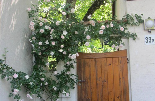 The apartment is a small, charming cottage under old walnut trees with separate entrance and private parking in front of the door. The bedroom is equipped with a 1.80 m double bed, wardrobe and desk. In the living room is a modern sofa bed with 1.60 slatted frame and mattress for two more guests. The kitchen was newly installed in 2015 and offers all comfort. The entire property is newly renovated and newly equipped. A cot and baby high chair we provide you when needed. Short-term and long-term guests are welcome.