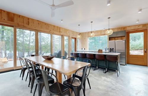 This property features a dock and kayaks for enjoying the water, along with modern conveniences like a dual-temperature beverage fridge. Wind down with spectacular sunsets or relax in the outdoor sauna after a day of adventure.