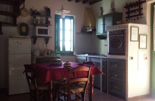 Upstairs there is another double bedroom plus a bathroom and a bedroom with a single bed and a cot. The house has free Wi-Fi connection and is equipped with mosquito nets and air conditioning. The house is furnished in a rustic Tuscan style with great attention to detail.