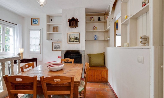 The interior of the home features tasteful decor with a mix of traditional and modern touches, including a wood-burning stove and fireplace for chilly evenings. A well-equipped kitchen allows for home-cooked meals, and the private terrace with garden furniture offers panoramic views of the surrounding nature. One pet is welcome, and public transport is available just 100 m away.